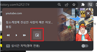 이 PIP 창은 클릭하여 탭으로 돌아갈 수도 있고, 크기를 늘리거나 줄일수도 있어서 활용도가 높다